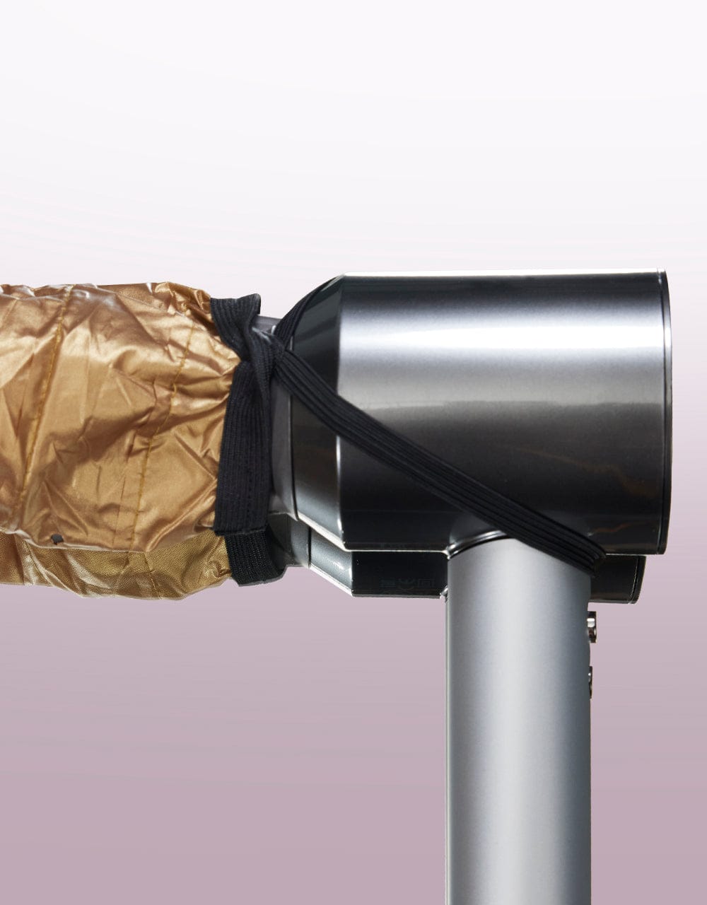 Inspirado en el kit profesional que Sam utiliza tras bambalinas, este set incluye un hood dryer dorado de uso profesional y un conjunto de 18 rulos de velcro en tres tamaños, diseñados para crear un volumen duradero desde la raíz hasta las puntas. Una forma intuitiva y práctica de conseguir un acabado de pasarela, ahora en casa.