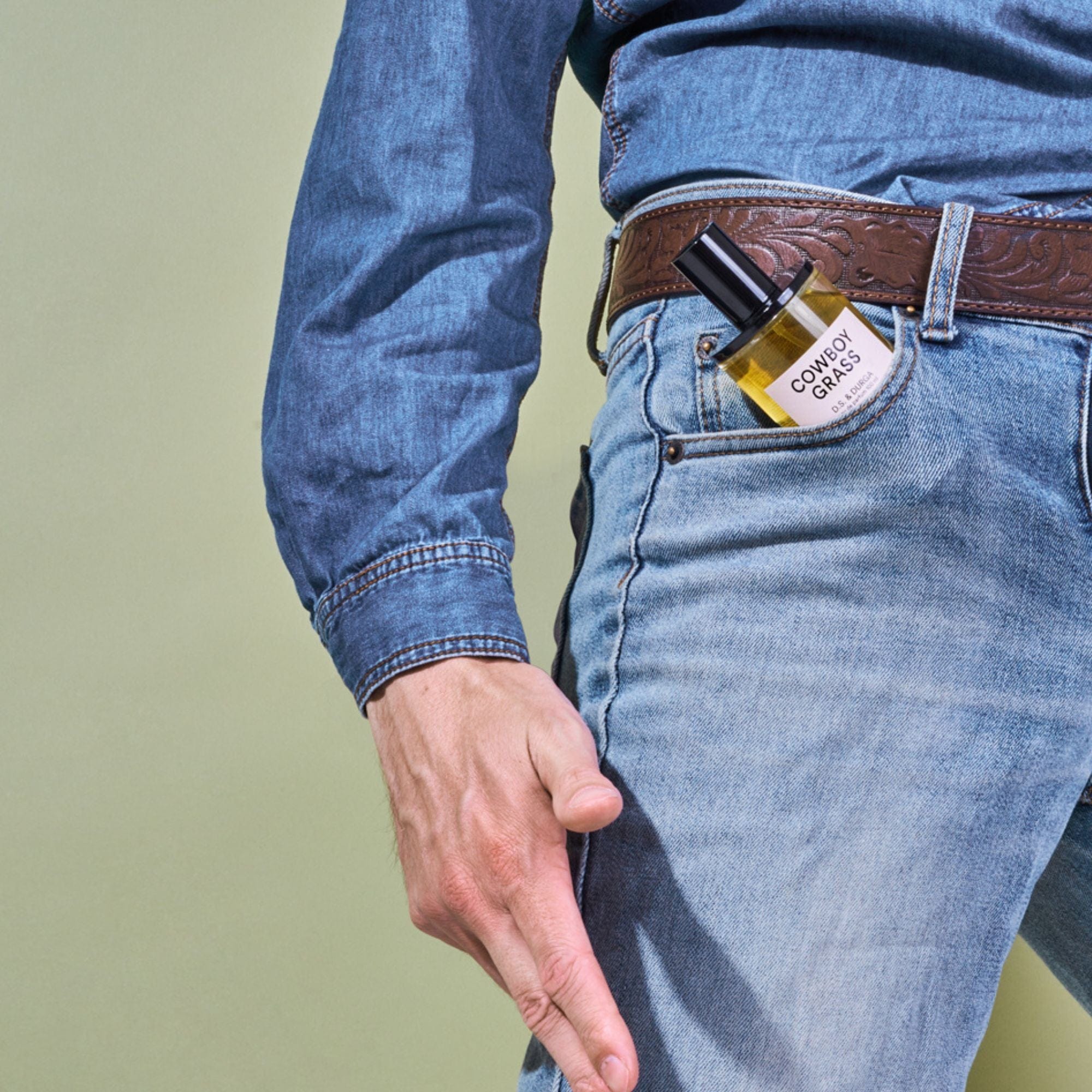 Cowboy Grass es un perfume de contrastes: salvaje y sofisticado, fresco y amaderado, un homenaje a la libertad y la aventura del Lejano Oeste.