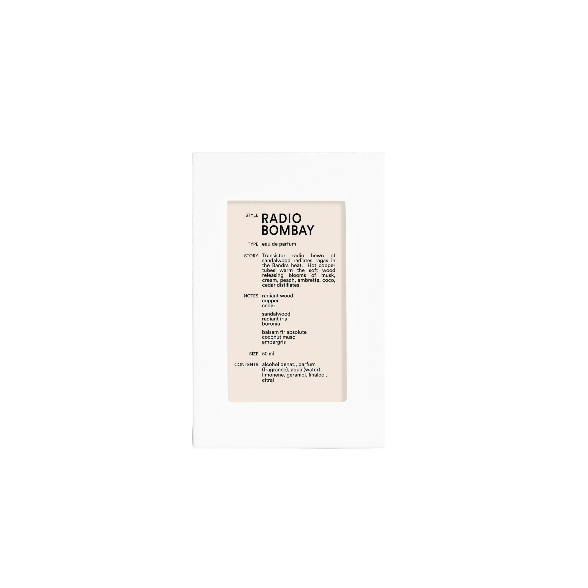 Radio Bombay es un ejercicio de imaginación aromática. ¿Y si una vieja radio de madera de sándalo, en plena ola de calor en Bandra (Bombay), cobrara vida con el calor de sus tubos de cobre? Este perfume recrea esa escena sensorial con un acorde cremoso, empolvado y envolvente que mezcla sándalo caliente, almizcles suaves y destellos frutales de melocotón y coco.