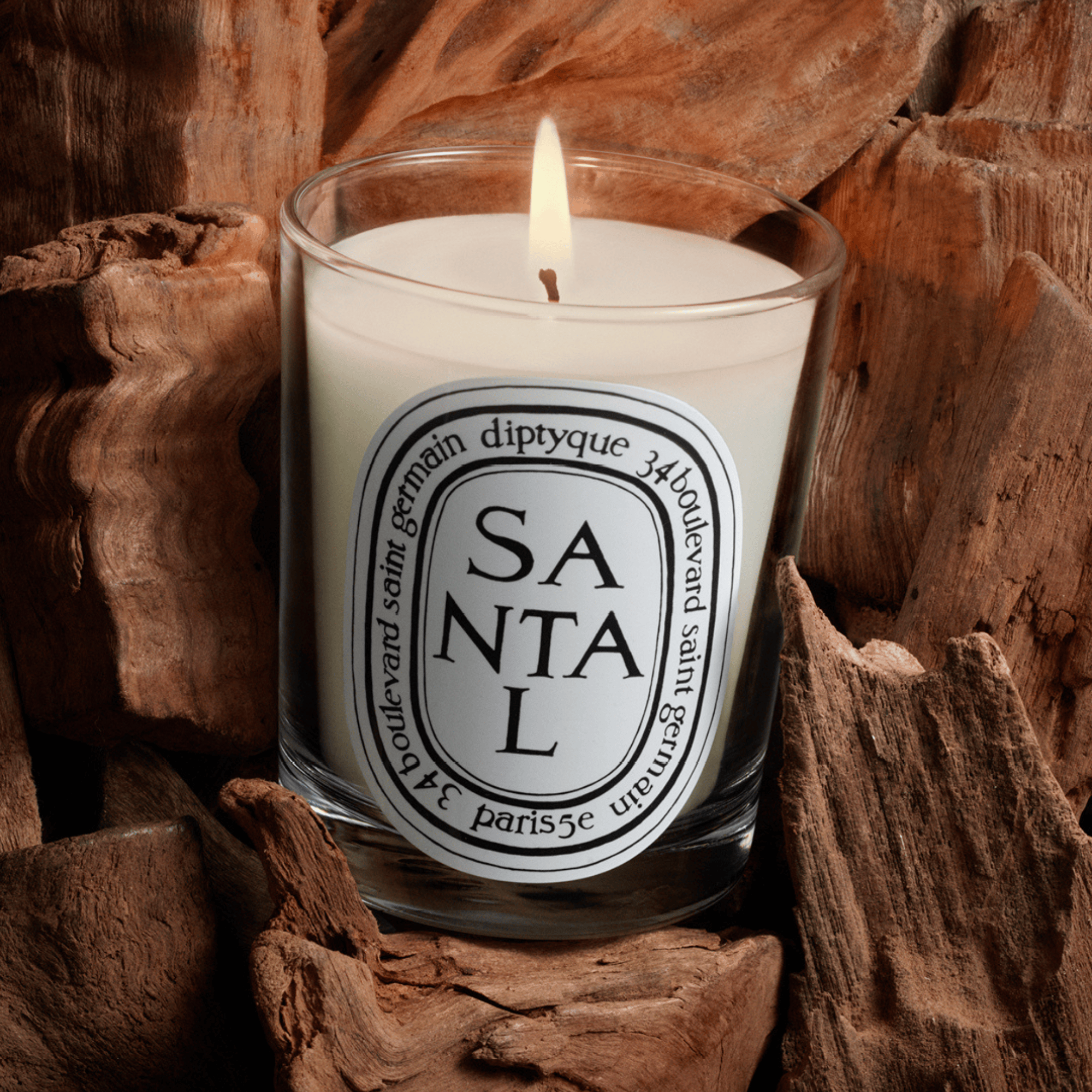 Esta es la vela Santal. El sándalo es una madera sagrada tan preciada que su misteriosa y seca fragancia ha llenado siglos de Historia.
