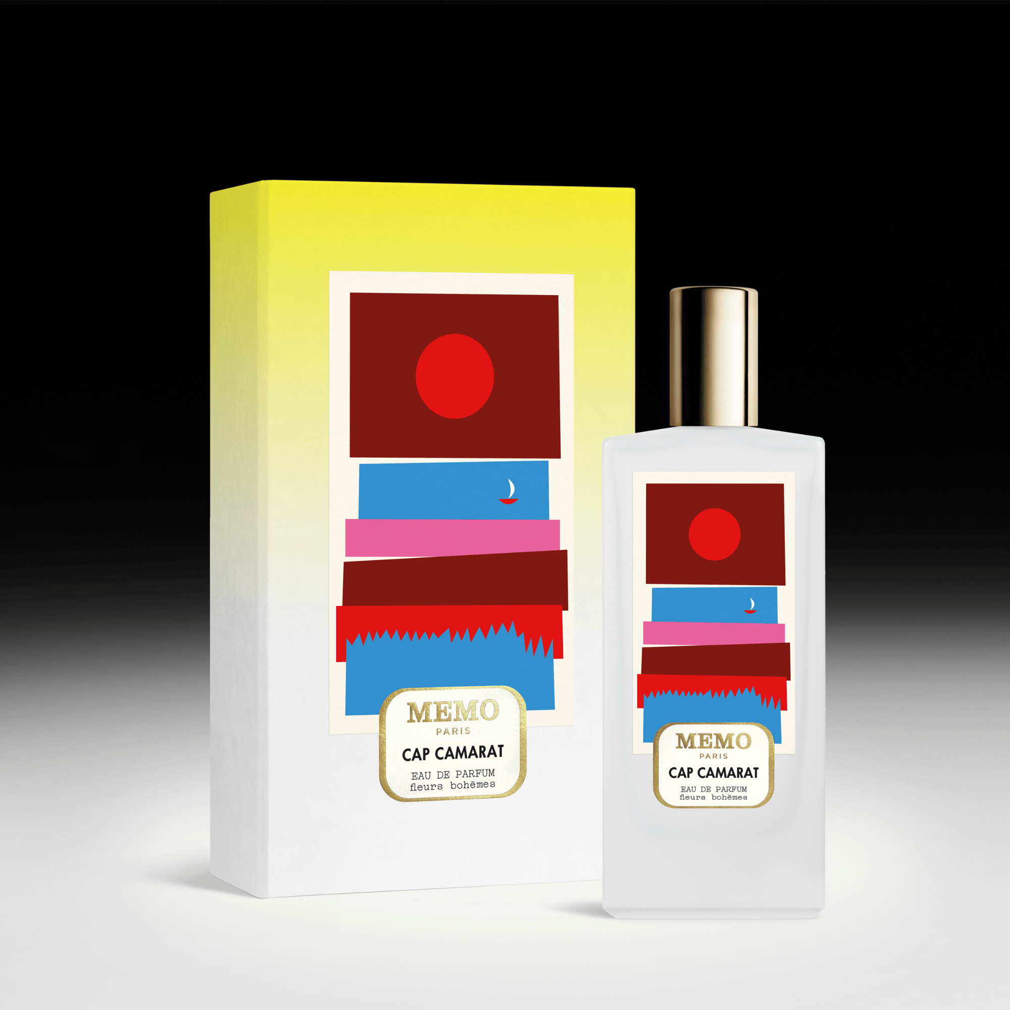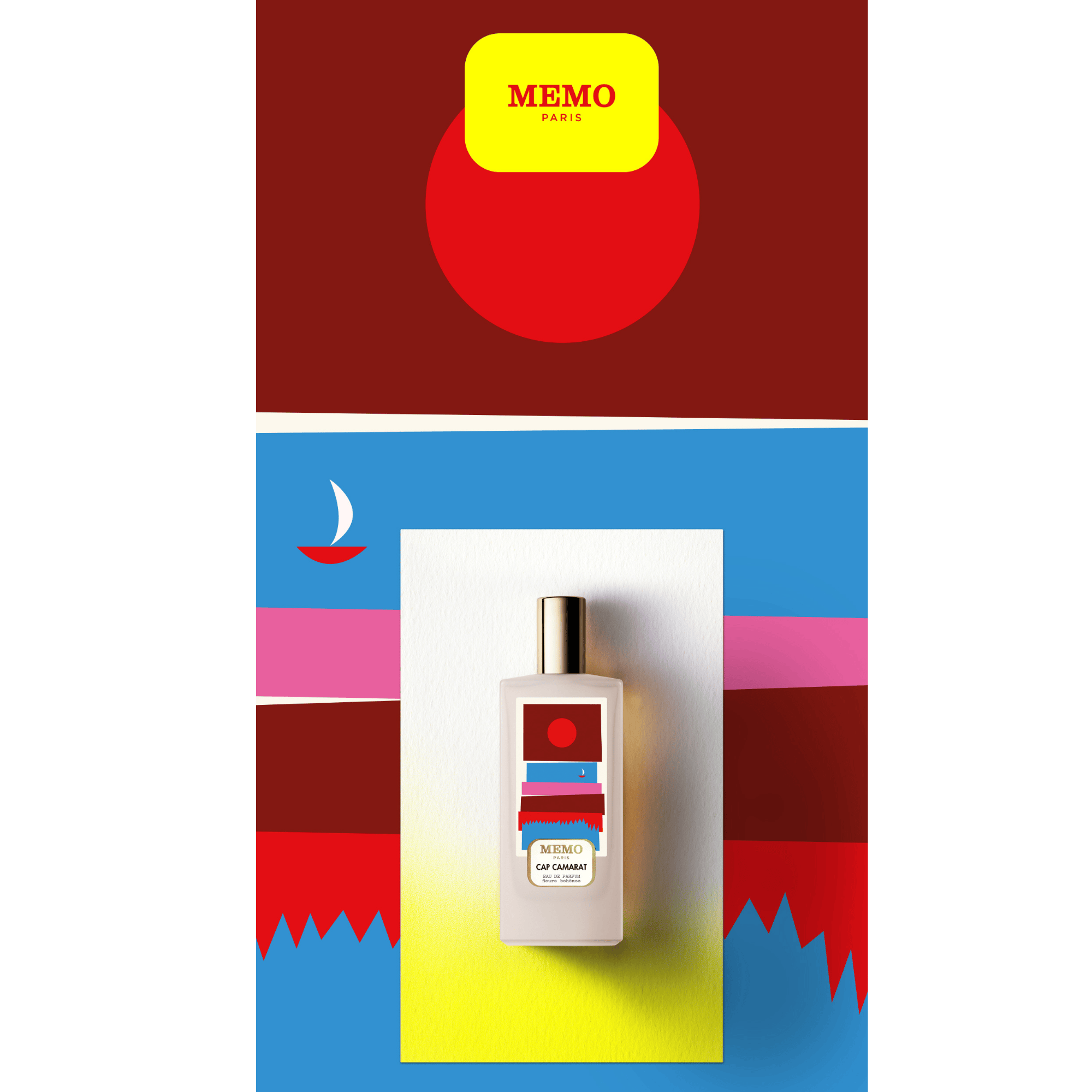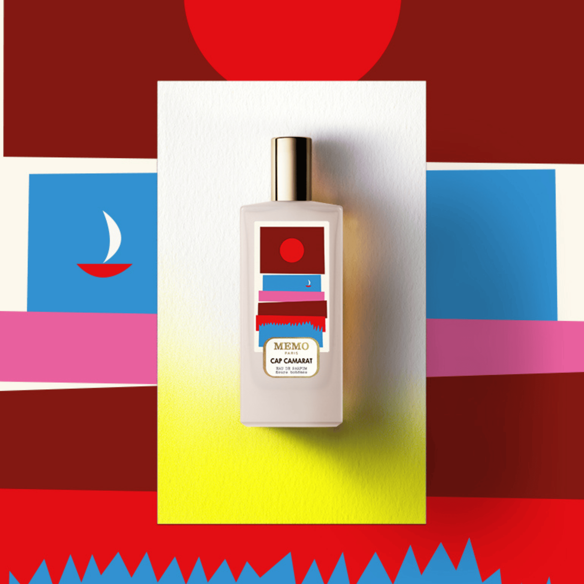 Para este lanzamiento, Memo Paris ha colaborado con la reconocida ilustradora italiana Olimpia Zagnoli, que reinterpreta el universo de Cap Camarat a través de una edición artística especial del frasco.