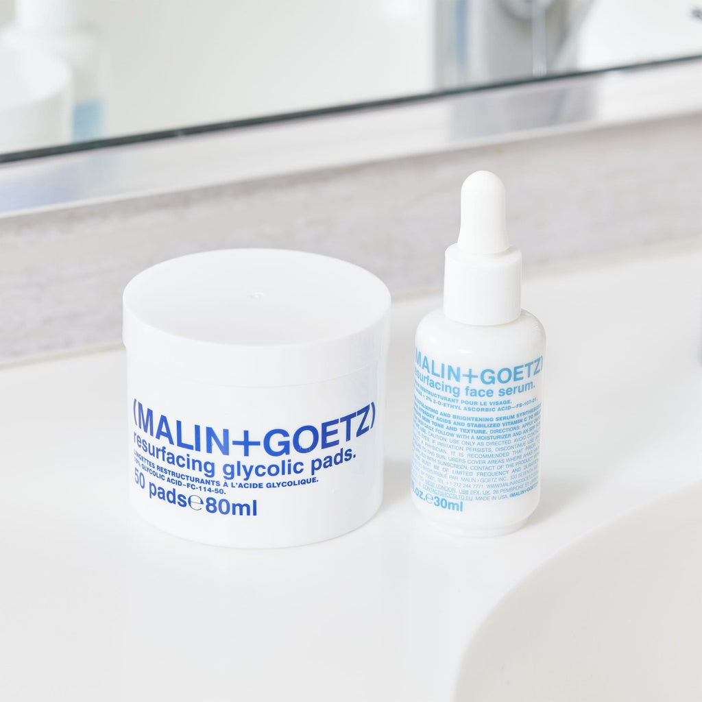 Este sérum re-estructurante para el rostro de (MALIN+GOETZ) Resurfacing Face Serum es un producto multitarea ideal para las pieles acneicas que quieran suavizar, aclarar e iluminar la piel así como cerrar los poros.