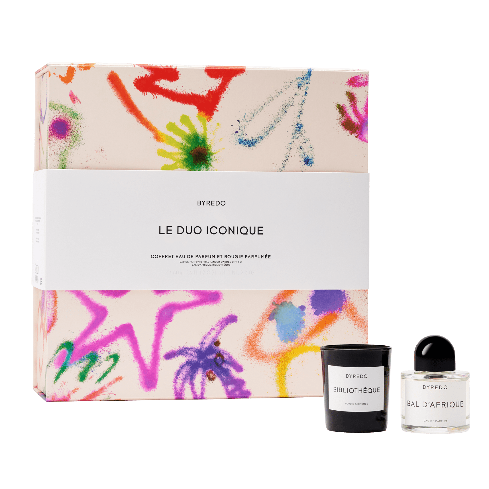 El Set Duo Iconique reúne dos de los productos más icónicos de Byredo: el Eau de Parfum Bal d'Afrique 50 ml y la vela Bibliothèque 70g. Un dúo que transforma tus gestos y tu espacio en una experiencia sensorial única.